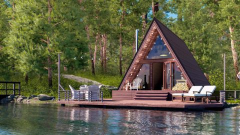 Стены комплектации “Коттедж” состоят из евровагонки, пароизоляции, утеплителя «мин. вата» 100 мм, мембраны АС, евровагонки, стойки каркаса 50×100 мм.
